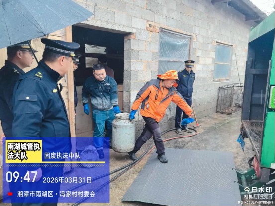 3月31日,雨湖区城管局、响水乡人民政府联合发力对响水乡冯家村多户外来租户涉嫌非法收集厨余垃圾饲喂牲畜、提炼潲水油等违法行为,开展专项执法整治行动,以铁腕手段、重拳打击此类顽疾乱象,坚决守住食品安全与生态环境底线。经查,响水乡冯家村部分外来租户受利益驱使、顶风作案,无视国家法律法规和群众切身利益,擅自收集各类厨余垃圾,既用于自家牲畜养殖,更暗中提炼潲水油谋取私利。收集餐余垃圾极易滋生蚊虫、散发恶臭,造成周边土壤与水体污染,严重影响人居生活环境;用厨余垃圾饲喂牲畜,还可能加剧重大动物疫病传播风险,给畜牧产业安全和群众生命健康安全带来双重隐患;非法提炼的潲水油若流入市场,将成为危害群众“舌尖上的安全”的隐形杀手。非法收集处置餐余垃圾行为恶劣、危害极大,周边群众对此怨声载道、反映强烈。