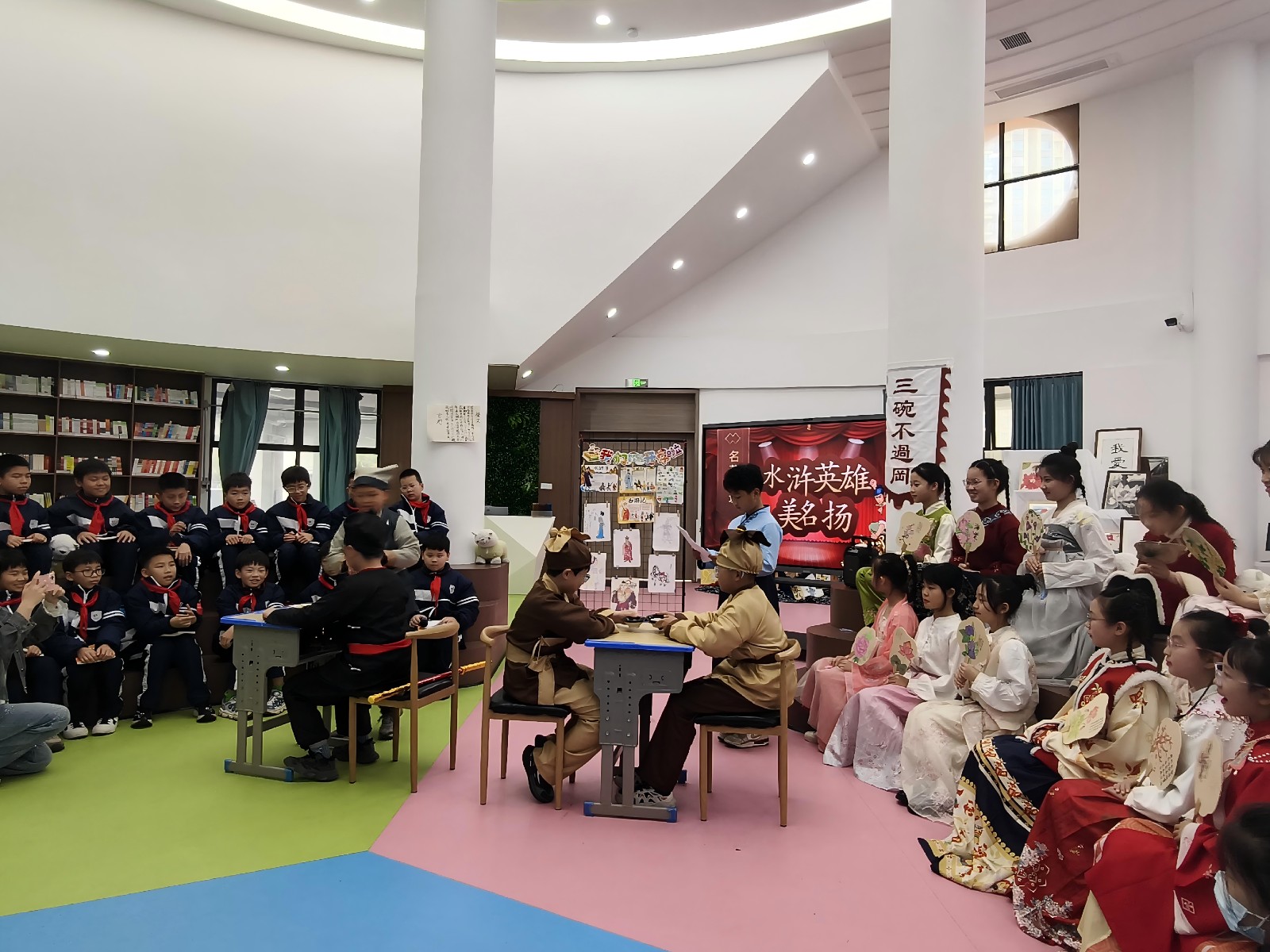 交流会现场书香浓郁、活力满满,实现了美育熏陶与智慧启迪的有机融合。同学们立足经典名著深度思考:或从名著人物经历出发思考孙悟空性格转变过程所体现的精神成长,或紧扣课文关键动作、语言复刻武松打虎高光情节的内在语言逻辑,或融合美术、音乐、与诗词再现红楼梦美轮美奂的人物精神。在美术老师指导下,大家创作名著人物画像、西游取经图等作品,用画笔定格经典、表达感悟,真挚的分享与创意作品,尽显新时代少年的阅读素养与精神风貌。