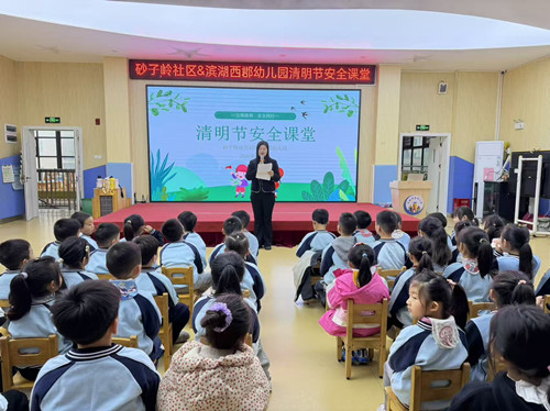雨湖融媒4月3日讯(通讯员 潘柔)清明将至,为让幼儿了解传统节日内涵,筑牢假期安全防线,近日,昭潭街道砂子岭社区走进滨湖西郡幼儿园,开展以“清明安全伴我行”为主题的安全教育活动,通过趣味讲解、互动抢答等形式,为孩子们送上一堂生动的清明安全课。