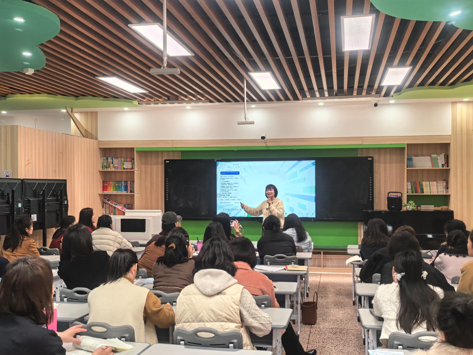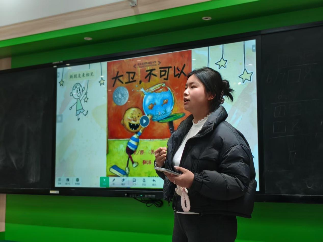 本次分享的7位教师均为学校青年教师,也是学校“三航工程”重点培养对象。活动中,7位青年教师依次进行专题分享,内容紧扣课堂实际。沈璐老师展示AI教学应用平台,为教师开展数字化教学拓宽视野;旷伊人老师立足高频教学场景,分享实用AI提问技巧,让智能工具成为课堂提效“利器”;张姝雅老师以绘本《大卫,不可以》为例,现场演示AI数字人操作,为语文课堂注入科技活力;邓倩茹老师结合二年级语文教材单元主题,演示AI在教学资源开发、素材整合中的高效应用;肖黛老师聚焦习作教学,分享AI辅助作文批改与个性化指导策略,有效破解作文批改效率低、指导不够精准等痛点;王楚老师以《三国演义》项目式学习为例,展示AI在组织阅读探究、开展深度交流中的创新实践;文伟老师通过多个鲜活教学案例,多角度呈现信息技术与语文教学融合的广阔空间。