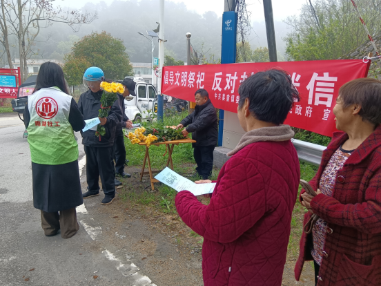 活动中,社工通过发放宣传册、面对面讲解的方式,向居民普及传统祭扫陋习的危害——焚烧纸钱不仅易引发火灾、污染空气,还破坏乡村生态环境,而鲜花祭扫、家庭追思等文明方式,既能寄托对先人的哀思,又能守护公共安全与环境。针对部分居民对绿色祭扫方式的疑问,社工逐一耐心解答,引导大家摒弃陈规旧俗,主动选择低碳、环保、安全的祭扫形式。