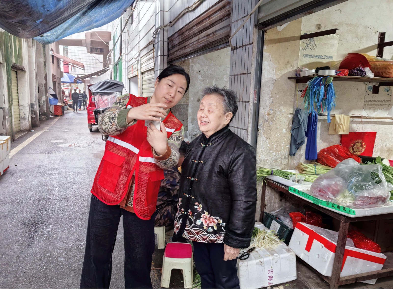 在日常摸排与政策宣传过程中,社区工作人员发现辖区菜场摊主黄奶奶尚未完成本年度养老保险待遇领取资格认证,且认证期限即将届满。一旦逾期未完成认证,将直接影响其养老金正常发放。考虑到黄奶奶年事已高,平日里要照看菜场摊位,既无暇前往社区办理,也不熟悉智能手机线上操作流程,工作人员当即在黄奶奶的摊位旁为其提供“一对一”现场认证服务。