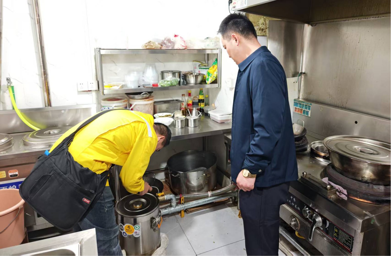 雨湖融媒4月9日讯(通讯员 罗武斌 吕亚新 唐庆)为切实筑牢辖区燃气安全防线,防范化解燃气安全风险,保障商户及居民生命财产安全,4月8日,和平街道民乐社区联合燃气公司专业工作人员,对辖区内餐饮、零售等各类门店开展天然气安全专项检查,全面排查整治燃气使用环节各类安全隐患,推动燃气安全治理向事前预防转型。