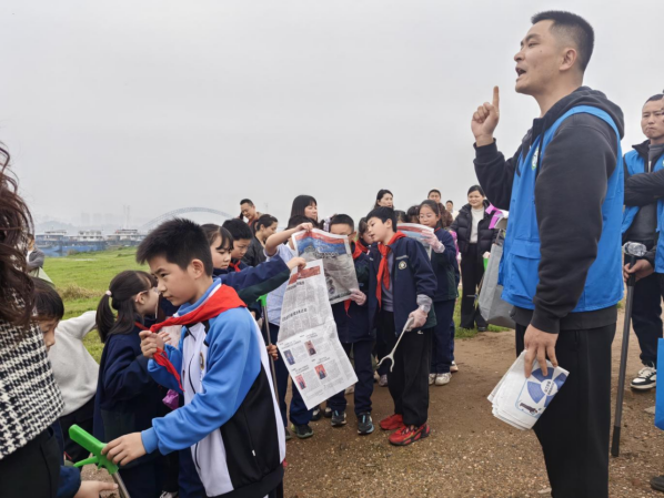 社区组织和平小学学生共同参与净滩实践,在沉浸式护水行动中树立节水、爱水、护水意识,以小手拉大手、童心护碧水,带动家庭、辐射群众,让生态环保理念扎根社区,营造全民守护湘江的浓厚氛围。