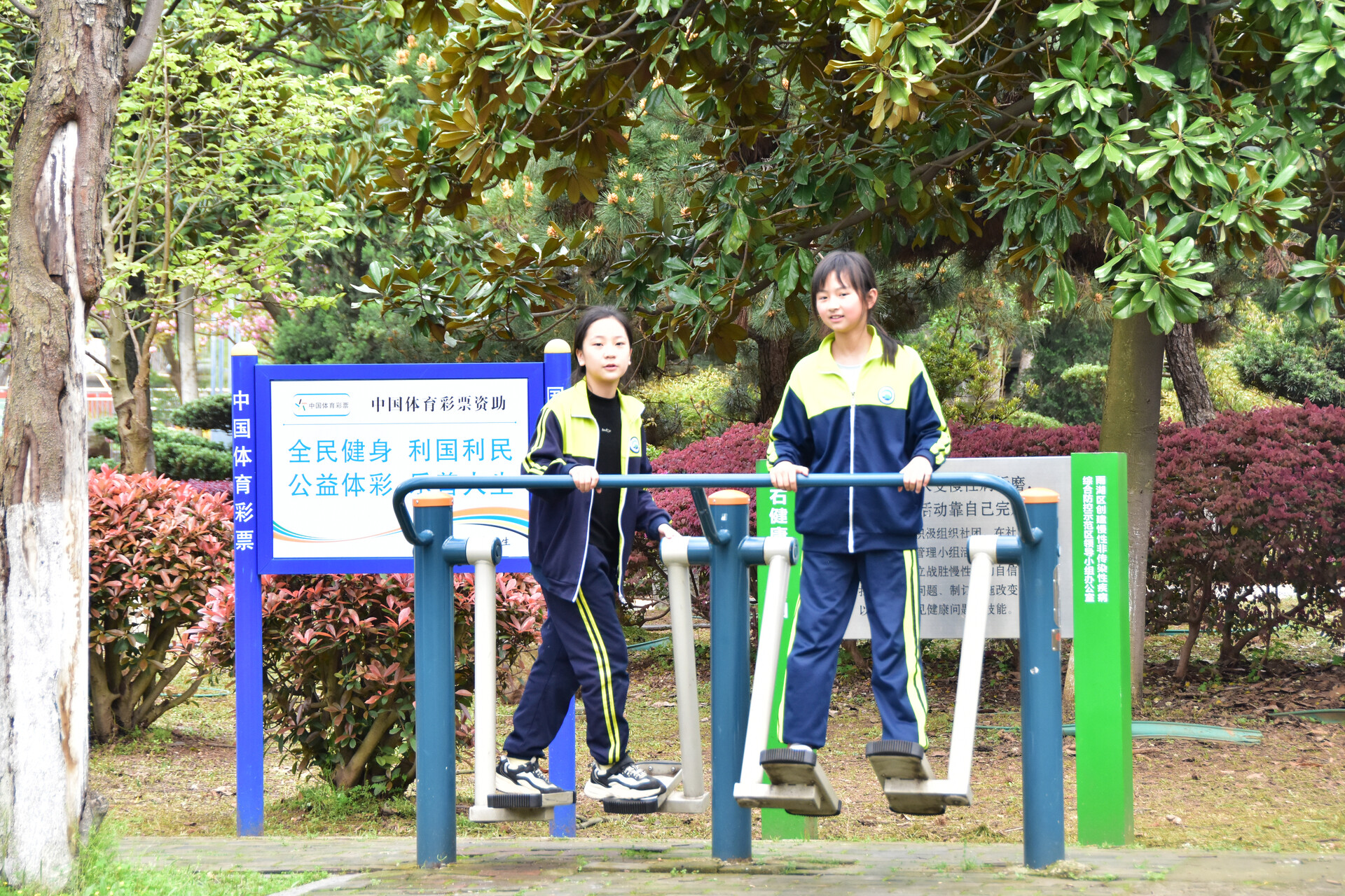 青少年在放学期间活动筋骨。