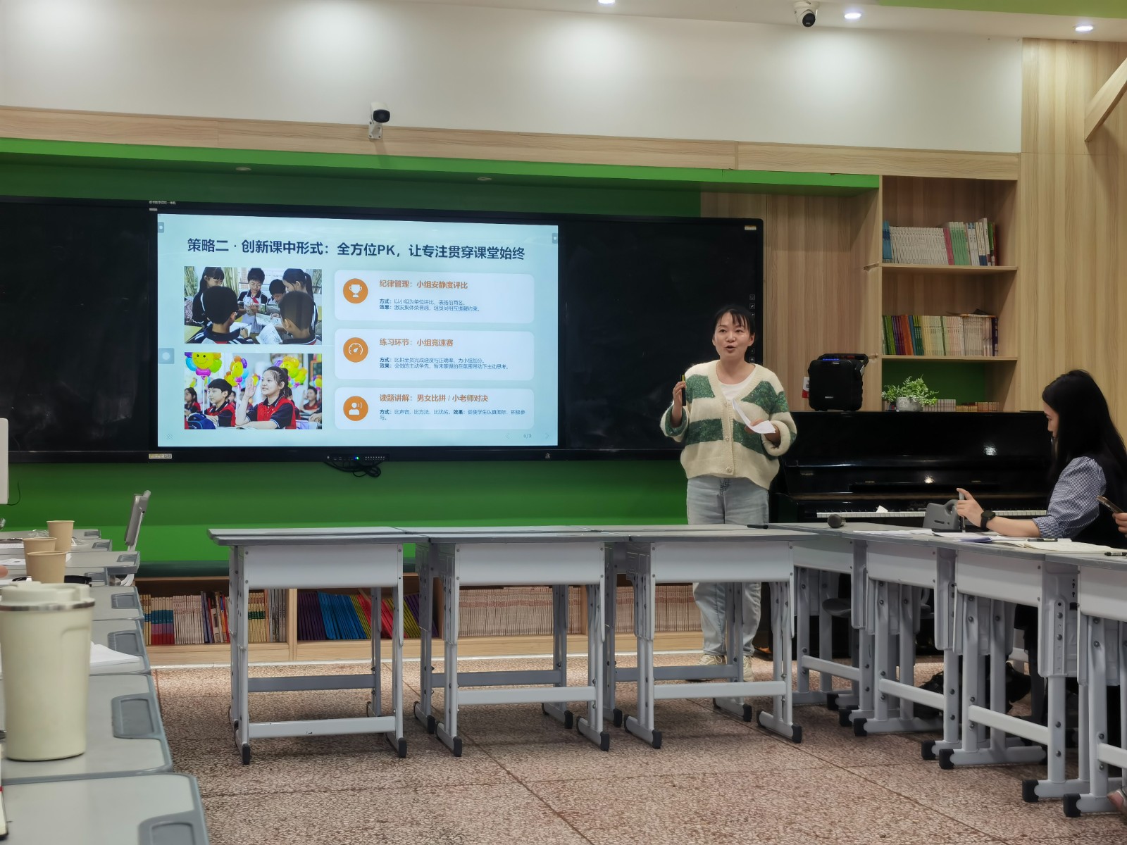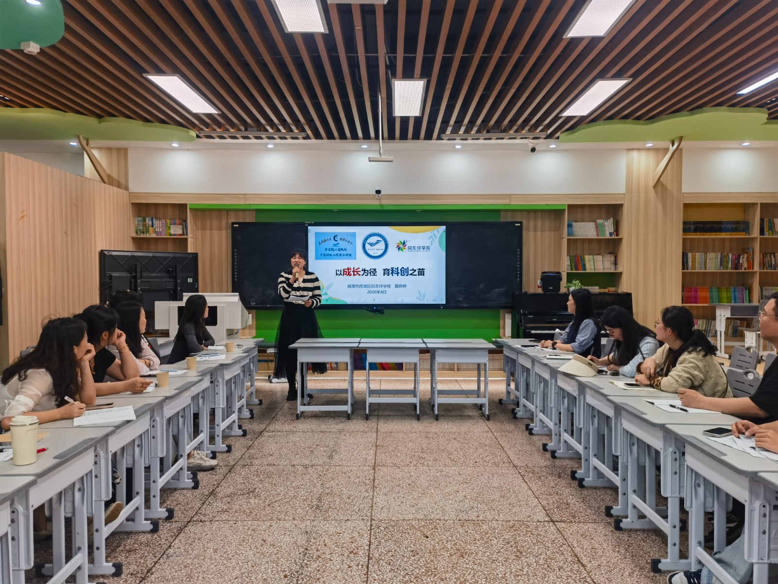 活动现场,多位青年教师结合自身教学实践,带来了干货满满的精彩分享,充分展现了学校青年教师的专业素养与成长风采。旷伊人老师以《90后教师的职业认同与适应》为题,结合自身成长历程,分享了青年教师如何快速建立职业认同、适应岗位需求、实现自我突破的心得与方法,为新入职教师指明了成长方向;向文捷老师以《教育是在心灵间修路架桥》为主题,分享了自己在日常教学中搭建师生心灵桥梁、坚守育人初心、践行育人使命的实践路径,传递了教育的温度与力量;黄婷婷老师带来《以成长为径,育科创之苗》主题分享,立足学科教学与科创教育深度融合,分享了在日常教学中培育学生科创思维、激发创新意识的实用策略,契合学校“五育并举、素养育人”的培养理念;饶芳老师以《三位一体,营造沉浸式读写环境》为核心,聚焦语文教学重难点,分享了构建“三位一体”教学模式、打造沉浸式读写课堂的实操经验,为提升语文教学质量提供了有益借鉴;唐琳老师以《小专注,大课堂——低年级注意力培养实践》为题,紧扣低年级学生身心特点,分享了课堂专注力训练的实用方法与管理技巧,针对性解决了低年级教学中的常见难题。