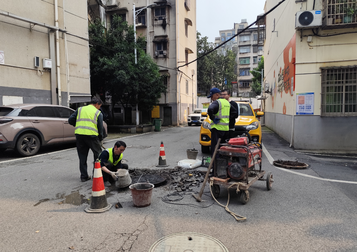 施工现场,工作人员规范设置安全警示标识,引导居民和车辆有序绕行,随后分工协作,依次开展旧井盖拆除、坑槽清理、新井盖安装、路面找平、压实加固等工序,严把施工质量关,确保新井盖与路面平整贴合、牢固耐用,从根源上解决异响和安全隐患。此次行动共更换、维修问题井盖数十个,有效改善了小区通行环境,获得居民广泛好评。