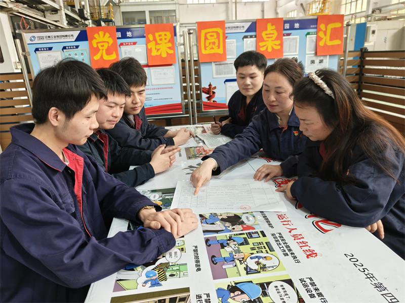 实业公司党委始终坚持问题从一线来、对策到一线去的工作原则,通过常态化一线走访、员工谈心谈话、现场实地调研等,动态梳理生产管理全过程中的堵点、难点、痛点问题,灵活精准确定党课研讨主题。随后组织党员、班组长、技术骨干等核心力量围坐交流,聚焦单一生产难题开展深度研讨、深挖问题症结、集中头脑风暴,让党课成为解决实际问题的“攻坚阵地”。