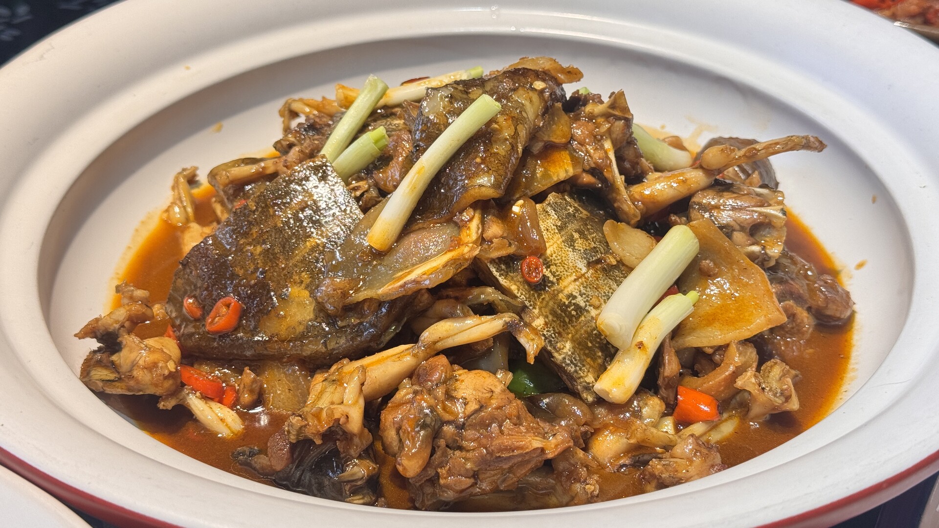 生态甲鱼烧田鸡。