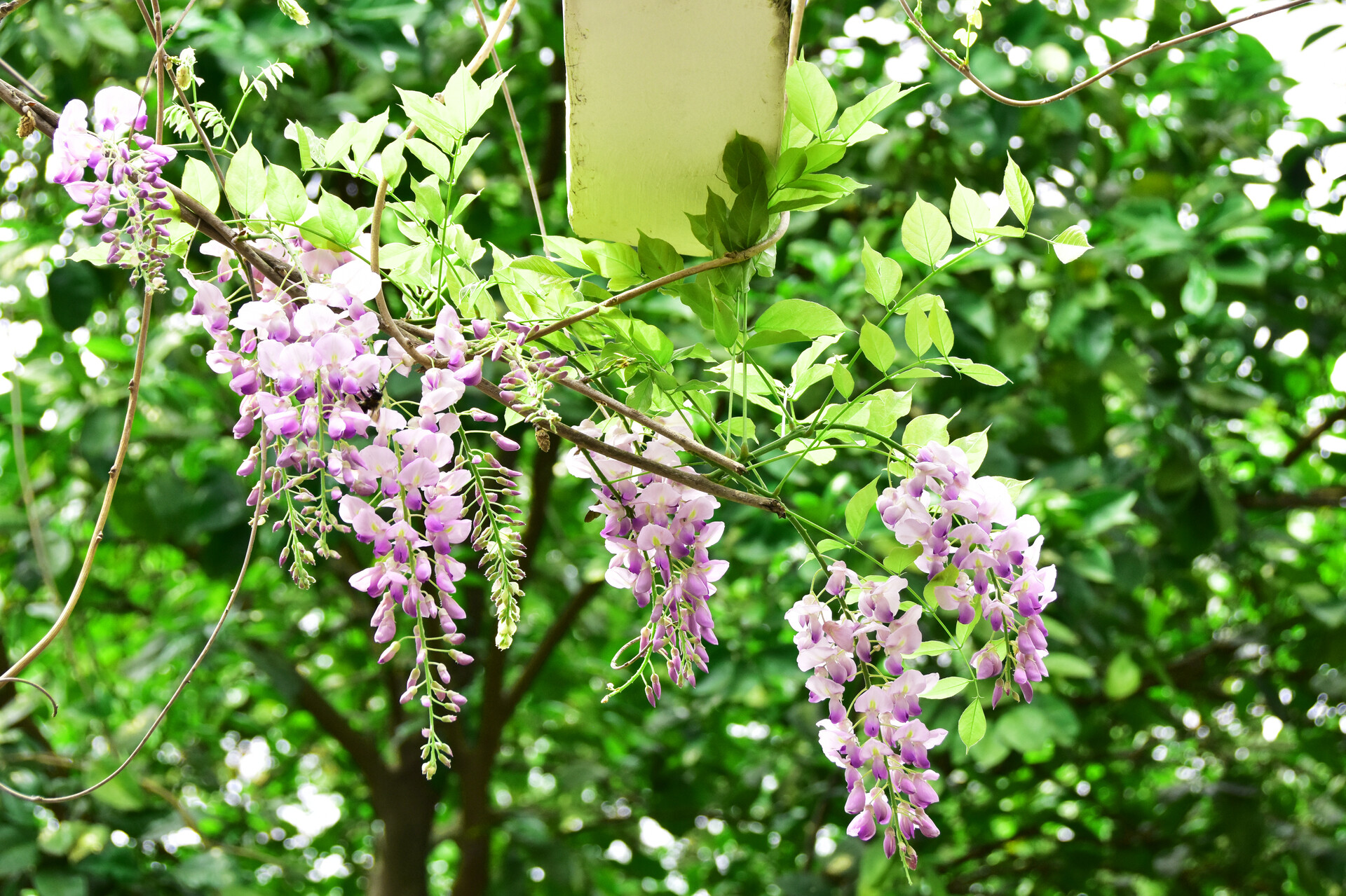 雨湖融媒4月15日讯(记者 梅晓蕾 易阳思)四月的雨湖,春色正浓。藤蔓绕架,紫藤垂丝。一串串紫藤如紫色风铃般垂悬而下,风起时轻轻摇曳,空气中飘着若有若无的淡香。