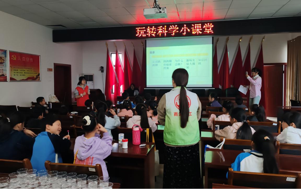 活动现场,社工化身“科学向导”,提前备好实验材料,耐心为孩子们讲解实验步骤、注意事项及科学原理,引导大家大胆尝试、细心观察。“神奇的彩虹”实验中,社工演示将不同颜色色素滴入含糖量不同的水中,利用液体密度差异,让色素分层形成绚丽彩虹。孩子们分组动手操作,小心翼翼地完成每一步,看着试管中浮现的分层色彩,脸上满是惊喜。随后,“神奇的跳跳糖”实验将活动氛围推向高潮。社工让孩子们先感受跳跳糖在口中的“跳动”与声响,再引导大家将跳跳糖倒入清水中,观察气泡冒出的现象,并讲解其原理——跳跳糖内的二氧化碳气泡遇水释放,产生的冲击力使其“跳动”。孩子们在趣味体验中,轻松掌握了基础科学知识。