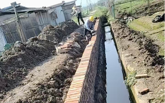 施工现场一派繁忙景象:挖掘机轰鸣作业,对淤积淤泥、废弃杂物进行彻底清理,拆除破损渠体;施工人员则分工协作,按照设计标准砌筑红砖护岸、夯实防渗层,严把每一道施工工序关。改造后,原本狭窄破败的沟道变得宽阔规整,笔直的砖砌体护岸牢固坚实,清澈的水流在畅通的渠道中平稳流淌,既解决了水土流失问题,又大幅提升了输水效率。“以前这条沟一到下雨天就堵,水排不出去;旱季又存不住水,浇地得费不少劲。没想到这次村里用分红的钱,还加上我们组里自己凑的钱,把渠道修得这么好,以后种地再也不用愁水了!”看着焕然一新的渠道,村民们脸上满是笑意。