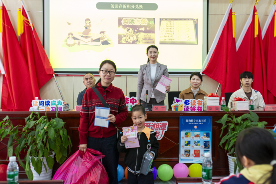 活动现场氛围浓厚、环节丰富,在趣味互动中解锁阅读乐趣。主持人用一个美丽传说讲述世界读书日由来,以及强调版权与尊重创作者,还通过知识问答调动现场热情,立云小学同学们踊跃参与、笑声不断。一段精彩的阅读活动回顾视频,全面展现了卫星村、红旗村、湘大社区等各村社区开展的红色悦读、童心悦读等系列成果,特别是“大手拉小手”帮阅读活动,湘潭大学志愿者们陪伴阅读、老党员讲述奋斗故事、老年人畅谈读书往事,一幅幅全民阅读的生动画面,展现长城书香魅力。