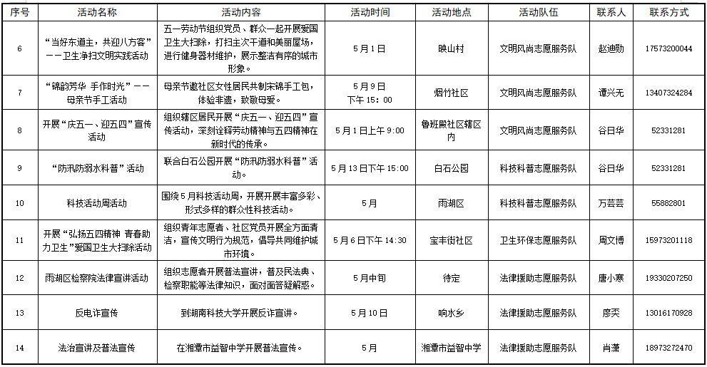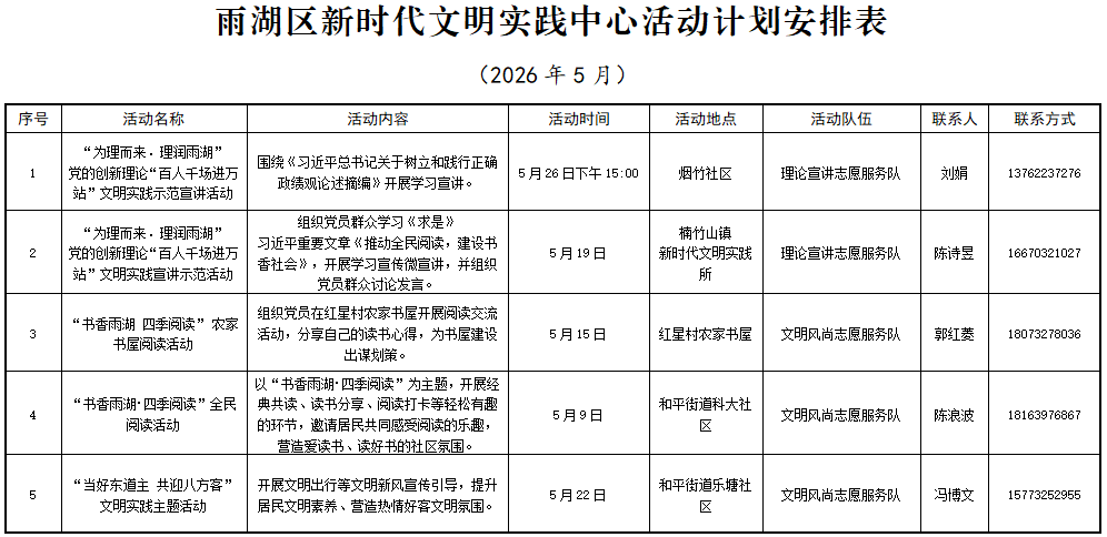 雨湖路街道新时代文明实践所站5月活动计划安排表.doc