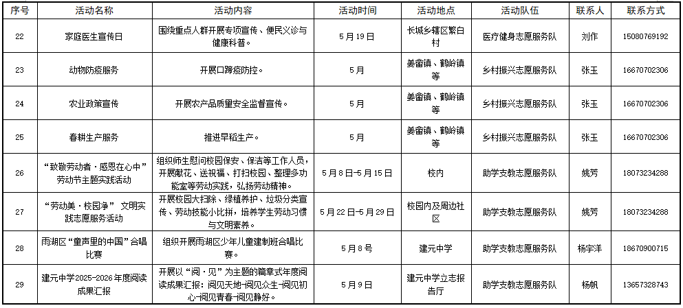 云塘街道新时代文明实践所站5月活动计划安排表.docx
