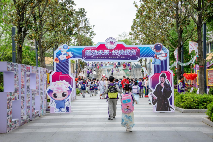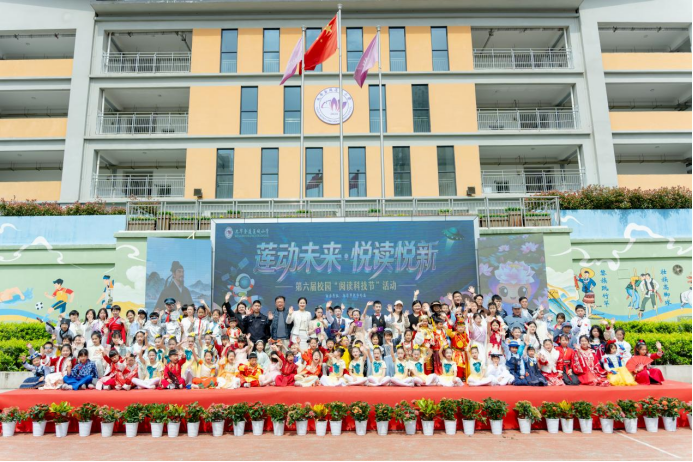 雨湖融媒4月28日讯(通讯员 姜锦洋 侯志霄)墨香涵养童心,科技点亮梦想。近日,九华金庭莲城小学第六届阅读科技节温情启幕,全校师生以书为纽带,以科技为羽翼,相聚校园共赴一场书香与创意相融、阅读与科创共生的成长盛会,在丰富多彩的沉浸式活动中,尽享阅读乐趣,绽放少年风采。