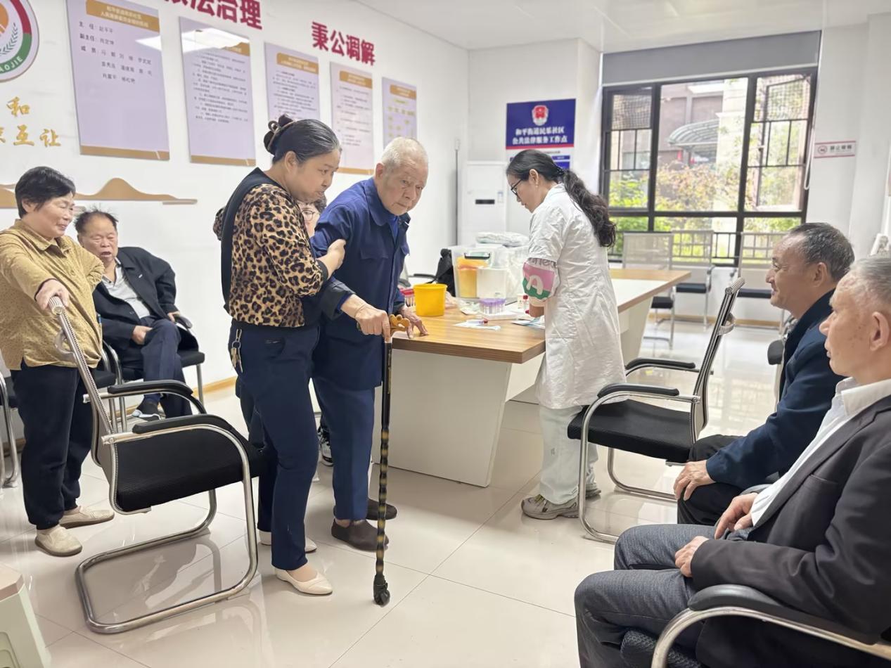 雨湖融媒4月28日讯(通讯员 唐庆)为深入贯彻国家基本公共卫生服务政策,切实关爱辖区老年群体健康,做到疾病早筛查、早诊断、早干预,4月27日至28日,和平街道民乐社区联合和平街道卫生服务中心,组织开展65岁及以上老年人免费健康体检活动,把优质医疗服务送到居民 “家门口”,用暖心守护银龄健康。